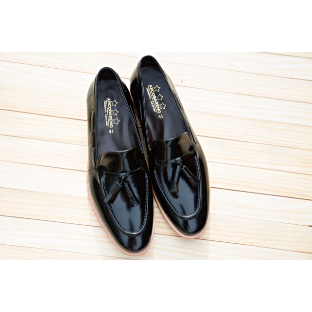 Tassel loafer shoes งานหนัง Italy แท้ HandMade สุดคลาสสิค สี Piano Black ไซด์ 35-48 (ใส่ไม่ได้สามารถเปลี่ยนได้) Loafer Arcobareno leather tassel shoes