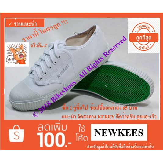 สินค้าอาจมีการเปลี่ยนแปลงราคาและโปรโมชั่น โปรด เช็คราคาล่าสุด รองเท้าผ้าใบนักเรียน ยี่ห้อ Convoy สีขาว รุ่น 205 พื้นเขียว >ที่นี่